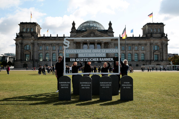 Die heute vorgestellte „Initiative Lieferkettengesetz“ eint Gewerkschaften, Umwelt-, Menschenrechts- und Entwicklungsorganisationen, Vertreter des fairen Handels sowie kirchliche Organisationen. Zum Auftakt der Kampagne erinnert die Initiative heute mit einer Aktion vor dem Reichstag an die Toten, die bei verschiedenen Unglücken bei Zulieferern deutscher Unternehmen ums Leben gekommen sind.