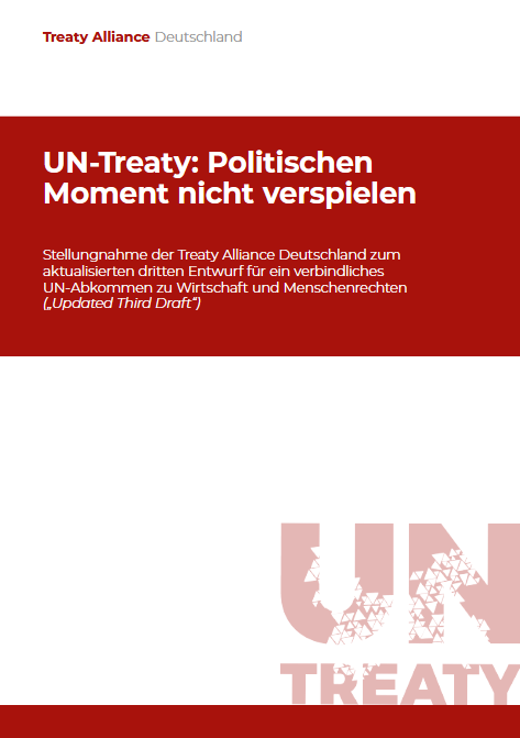 Im Jahr 2014 erteilte der Menschenrechtsrat der Vereinten Nationen (UN) einer zwischenstaatlichen Arbeitsgruppe den Auftrag, ein internationales Abkommen zum Schutz von Menschenrechten im globalen Wirtschaftsverkehr (auch „UN-Treaty“ genannt) zu formulieren. Seitdem verhandelt die zwischenstaatliche Arbeitsgruppe aus Vertreter*innen von Regierungen jährlich über den aktuellen Stand des Entwurfs. Auch Vertreter*innen aus Zivilgesellschaft, Gewerkschaften und Wirtschaftsverbänden nehmen regelmäßig an den Tagungen teil. Im Juli 2023 legte Cristian Espinosa Cañizares, ecuadorianischen Vorsitzender der Arbeitsgruppe eine Aktualisierung des dritten überarbeiteten Abkommensentwurfs von August 2021 vor. Laut dem Vorsitzenden basieren die Aktualisierungen auf den mündlichen und schriftlichen Beiträgen der Staaten, internationaler und zivilgesellschaftlicher Organisationen, Gewerkschaften, Menschenrechtsinstituten und Unternehmensverbänden, die während der achten Tagung der zwischenstaatlichen Arbeitsgruppe im Oktober 2022 eingebracht wurden, weiteren schriftlichen Einbringungen der verschiedenen Akteur*innen sowie den Ergebnissen von regionalen Konsultationen. Der aktualisierte Entwurf bildet die Grundlage für die Verhandlungen während der neunten Tagung der Arbeitsgruppe vom 23. bis 27. Oktober 2023 in Genf.