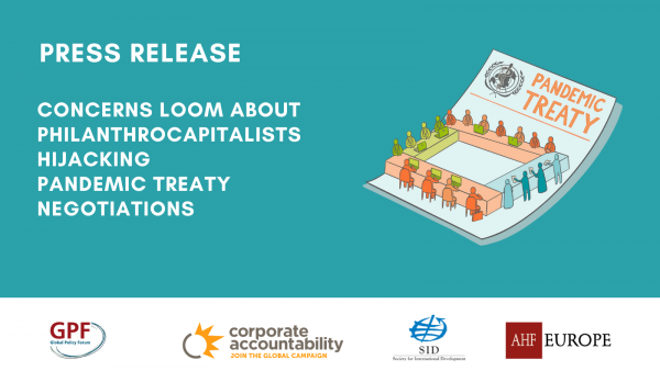 Press release by Global Policy Forum Europe, Society for International Development, Corporate Accountability and AHF Europe as members of the Geneva Global Health Hub