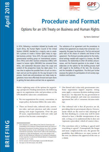 Cover procedure and format 04/10/2018 Options for an UN Treaty on Business and Human Rights By Harris Gleckman Published by: Global Policy Forum and Rosa Luxemburg Stiftung-New York Office Berlin/Bonn/New York, April 2018 Download the briefing (pdf, 249 KB)